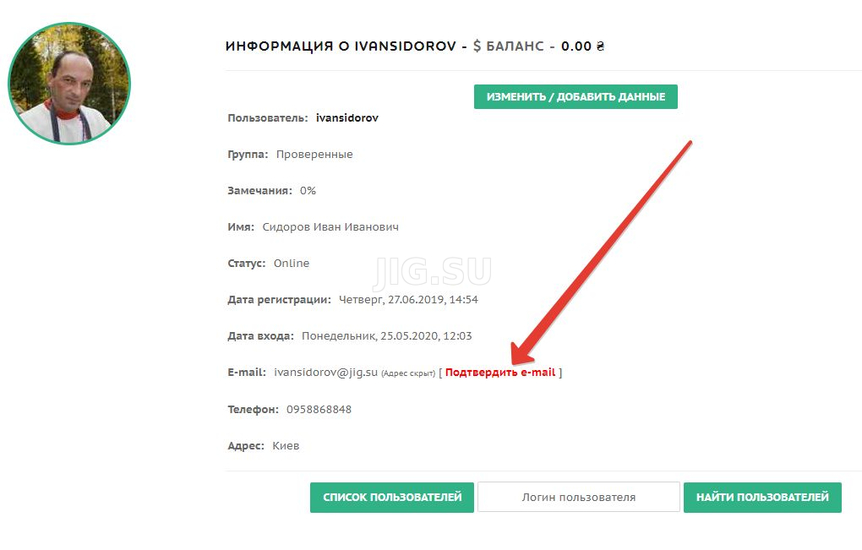 Здравствуйте, ******(Ваши данные). Вы получили данное письмо, так как этот email адрес был использован при регистрации на сайте "Интернет-магазин JiG.SU". Если вы не регистрировались на этом сайте, просто проигнорируйте данное письмо. ---------------------- Ссылка подтверждения: http://jig.su/index/****************************** ---------------------- Код подтверждения: ********* Адрес сайта: http://jig.su/index/ ---------------------- Для подтверждения вашего email адреса нажмите на ссылку подтверждения, указанную выше, ИЛИ: 1. Зайдите на сайт и авторизируйтесь, введя свой логин и пароль; 2. Зайдите на свою персональную страницу, нажав на ссылку "Мой данные" или "Персональный кабинет"; 3. Перейдите в раздел "Подтвердить email" и введите Код подтверждения указанный выше. Если вы не подтвердите ваш email адрес, то не сможете воспользоваться функцией напоминания пароля, если забудете пароль от вашего аккаунта. ![]() Подтверждение E-mail обязательная процедура и требуется для того, что бы отсечь автоматические регистрации на сайте, а также не принимать во внимание "пробные"* заказы пользователей. * Заказы которые некоторые клиенты делают просто из интереса или необдуманно.