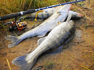 ![]() В озерах, прудах и реках с иными условиями судака не найти. Рассматриваемый хищник настолько чувствителен к загрязнениям, что даже при незначительном их количестве очень быстро перемещается на более чистые участки, а при большом количестве примесей в воде может практически сразу погибнуть. Места ловли судака на спиннинг Больше всего рассматриваемый хищник предпочитает обустраиваться в ямах вблизи фарватера, реже на глубоких местах водоемов, но с песчаным или хрящевато-глинистым дном. Клыкастый предпочитает участки с обилием донных камней, затонувших деревьев, коряг.В поиске мест скопления хищника не стоит проходить мимо омутов около плотин. Редко, но все же можно, встретить судака среди зарослей водной растительности. В последнем случае добыча будет представлена в основном в виде мелких рыбок, которые для настоящих рыбаков не представляют интереса вообще. Ловля судака на спиннинг зачастую проходит на отмелях, куда хищник выходит на поиски пищи, в частности, уклейки. Перспективны в плане поимки судака считаются выходы из подводных бровок, ям. Рассматриваемые рыбы большую часть времени проводит у дна, выходя на отмели только 2-3 раза в день, и то последнее происходит в основном в летнюю пору. К числу удачных мест относятся прибрежные территории, особенно при наличии там резких перепадов глубин. На таких участках течение не настолько сильное, и рядом с берегом появляется обратная струя. Хотя если вблизи берега на дне отсутствует какая- либо растительность, то на активные поклевки судака можно не рассчитывать. Ловля судака на спиннинг: лучшее время В течение суток судак непрерывно мигрирует по водоему. Незадолго до рассвета его можно поймать у бровок, на незначительной глубине. К утру представители рассматриваемого вида рыб перемещаются поглубже, время от времени меняя место дислокации.Из личного опыта многих рыболовов, самыми клевыми периодами считаются часы: 11:00, 15:00, 18:00. Весной судак набирает активность сразу после схода льда. До апреля, когда у хищника происходит нереста, он наиболее активен и, следовательно, попадается на все движущееся. Ловля судака в мае, особенно в последние дни весны, также проходит очень результативно. В летнюю пору клыкастый активен на протяжении дня, но на отличный улов следует рассчитывать с рассвета до 10:00 либо вечером с 17:00 до 21:00. При жаркой погоде судак не особо охотно клюет, тогда как в периоды слабых дождей у него возрастает интерес к приманке. Сентябрь и октябрь для ловли судака на спиннинг считаются самыми результативными, тогда как в ноябре активность рыб рассматриваемого вида в большинстве водоемов постепенно утихает, вообще исчезая к началу ледостава. По времени наиболее результативным периодом считается утро до восхода солнца. На хороший клев судака можно рассчитывать в вечернее время на отмелях. Вам может пригодиться:Джиг-головкиВиброхвостыТвистерыГрузилаТовары для отдыха и туризма |