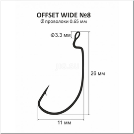 КРЮЧОК офсетный с большим ухом №8 (26 мм, d пров. - 0,65 мм), пр-во Украина - 1 шт.