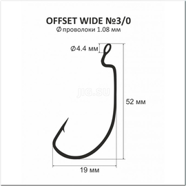 КРЮЧОК офсетный с большим ухом №3/0 (52 мм, d пров. - 1,08 мм), пр-во Украина - 1 шт.