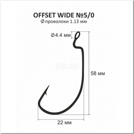 КРЮЧОК офсетный с большим ухом №5/0 (58 мм, d пров. - 1,13 мм), пр-во Украина - 1 шт.