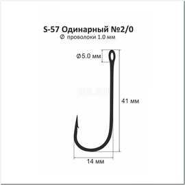 КРЮЧОК одинарный S-57 с большим ухом №2/0 (41 мм, d пров. - 1 мм), пр-во Украина - 1 шт.